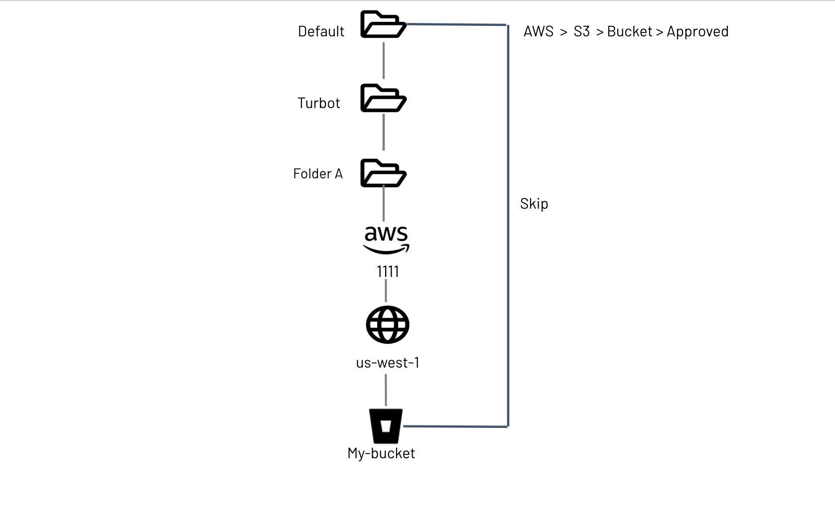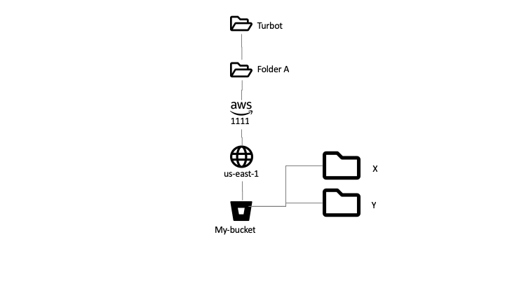 Turbot > Folder A > AWS 1111 > us-east-1 > X > Y > my-bucket