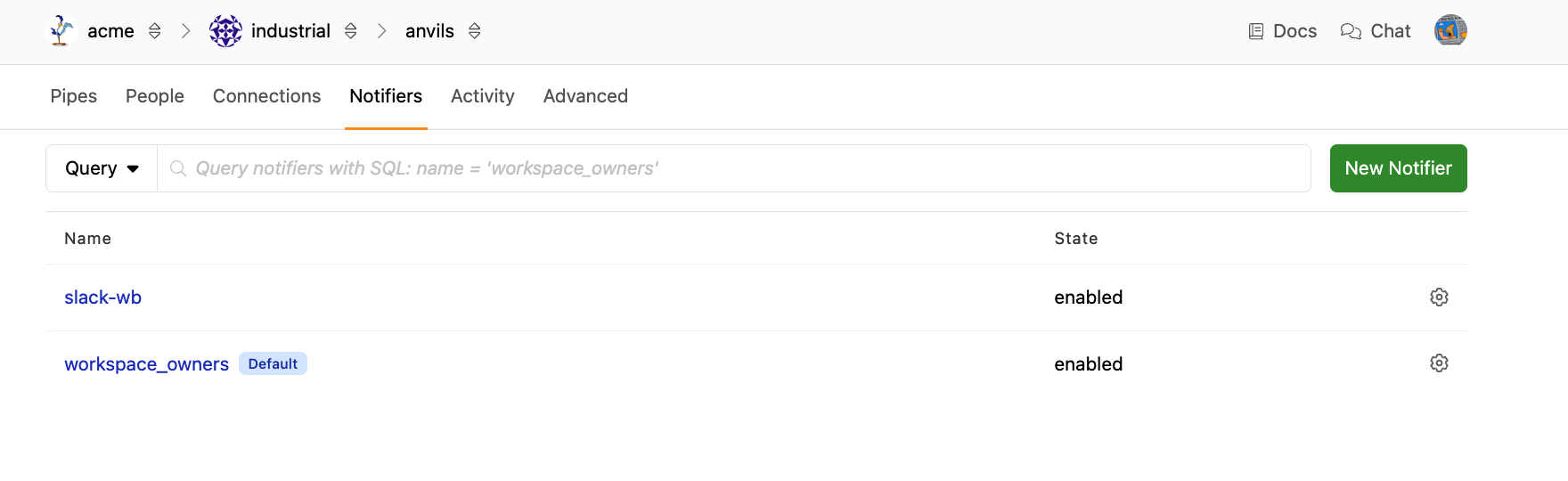Notifiers that are created for an organization can be used in any workspace in the organization.