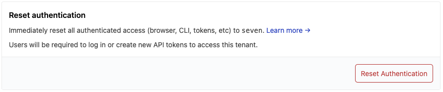 Reset authentication button to reset authentication for all existing temporary and user tokens.