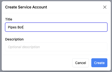 The primary use case for service accounts is to enable automation and integration scenarios, where a non-human user needs to interact with the Pipes platform. Service accounts can be used in CI/CD pipelines, automated scripts, or other systems that require access to Pipes resources without human intervention.