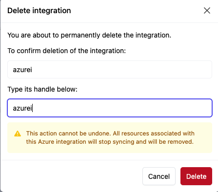 Deleting the Azure Integration