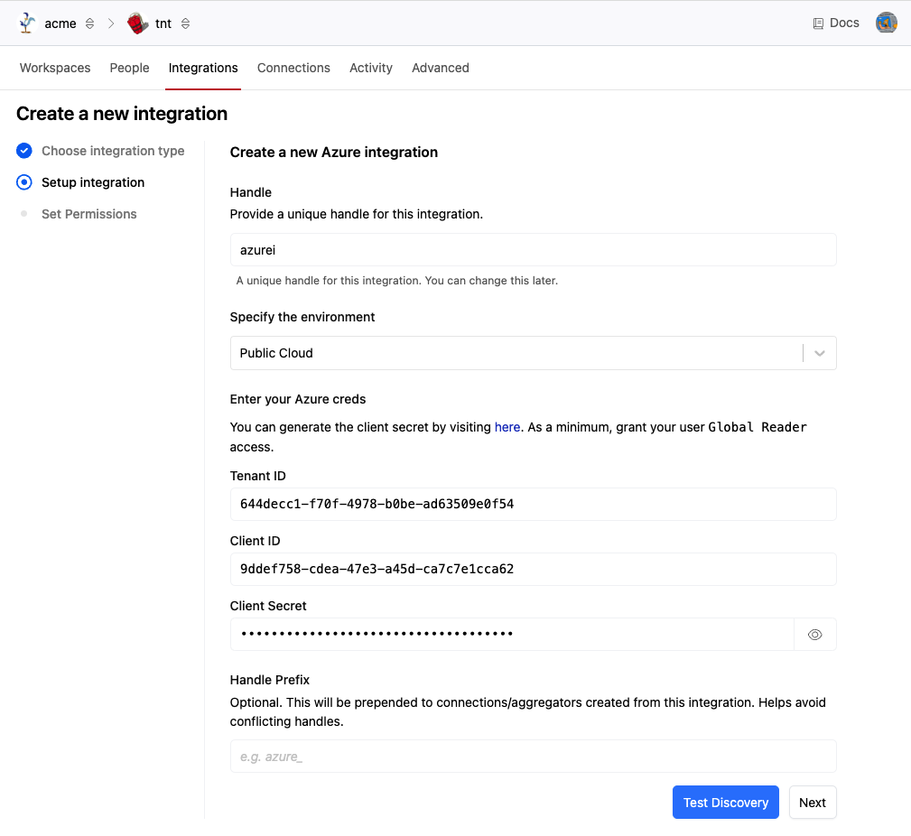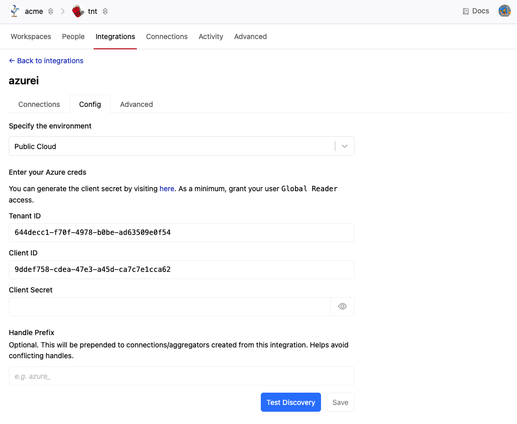 Optionally, provide a Handle Prefix to be pre-pended to the names of connections created from this integration. This is optional but may be useful for organizational purposes or to ensure the uniqueness of the generated connection handles.