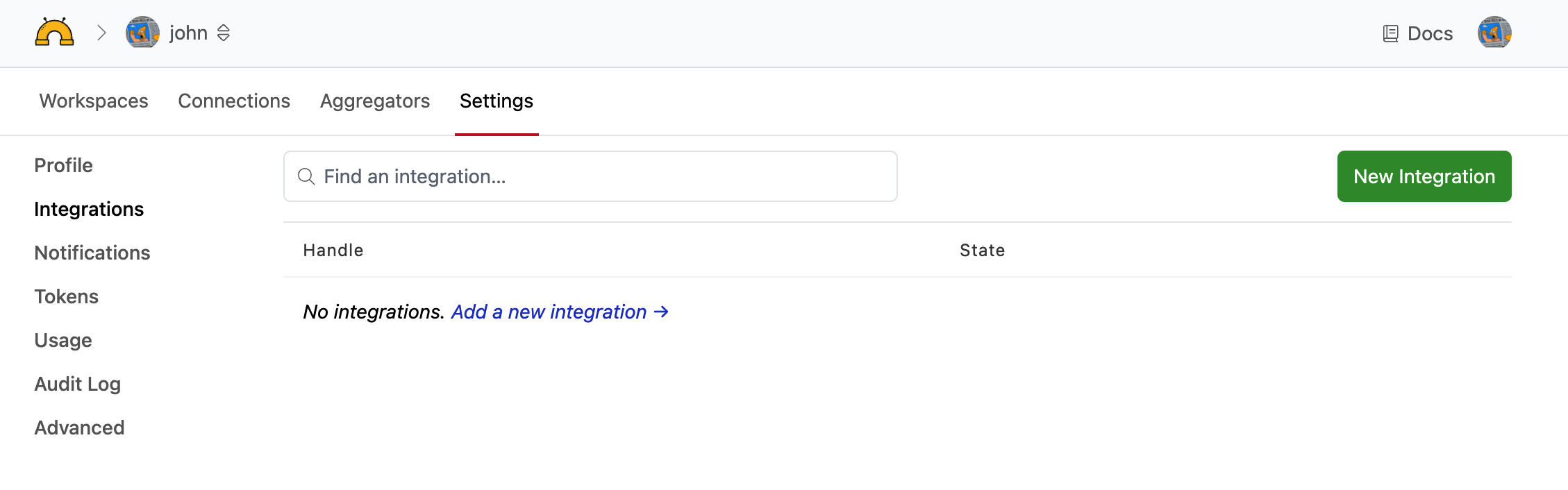 Next, click the New Integration button. You will be asked to select an integration to create.