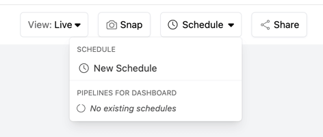 Scheduling a snapshot is as simple as navigating to the dashboard you wish to schedule, optionally setting it up with any required inputs and choosing the Schedule dropdown from the dashboard toolbar.
