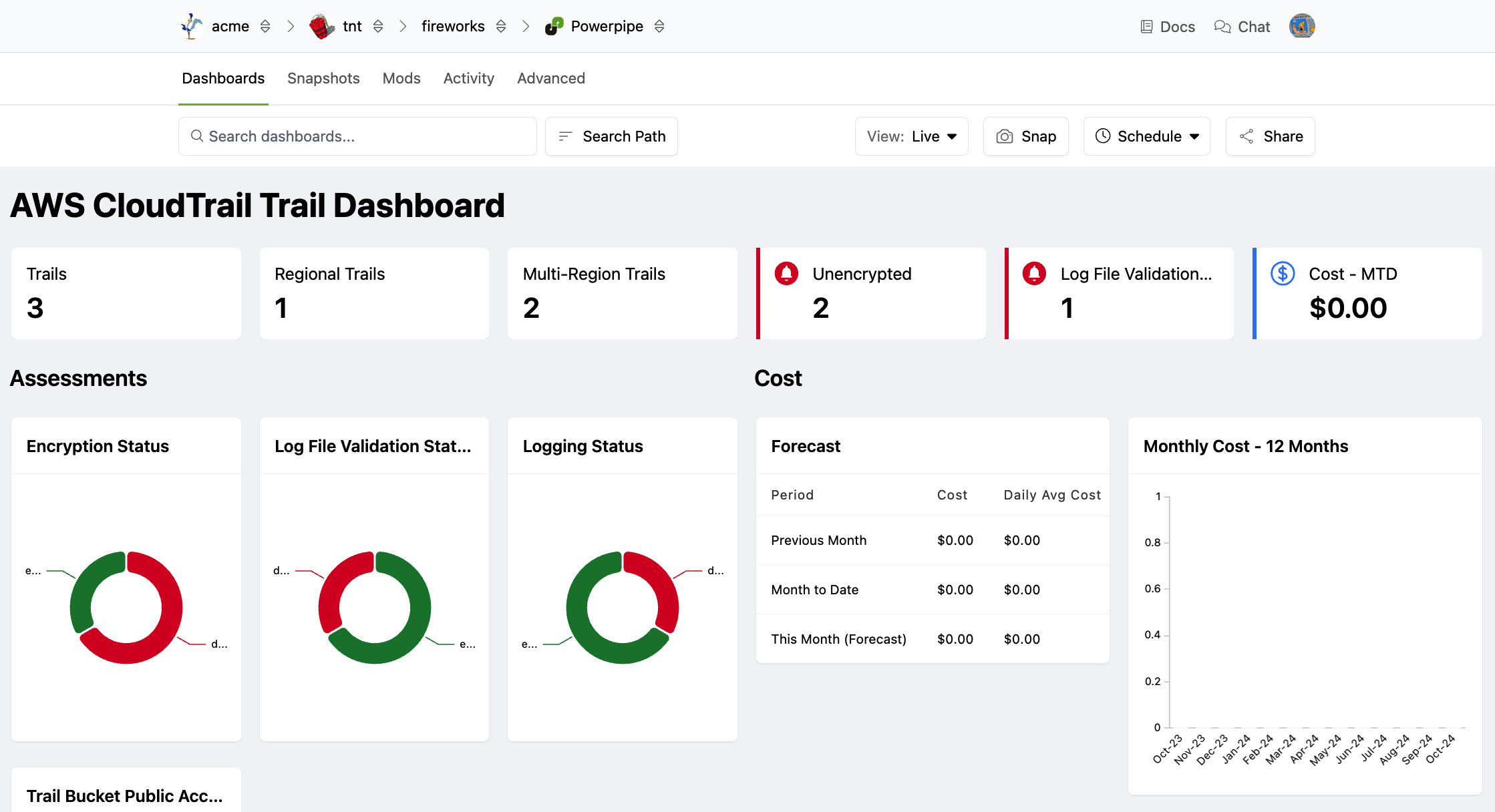Rather than manually capture dashboard snapshots, Turbot Pipes allows you to schedule them and be notified when complete.